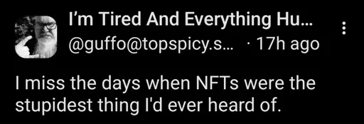 But also implemented incredibly stupidly. You are purchasing a url in a blockchain that points to a server or domain a singular person or org owns in most cases. That gets rid of any point of the blockchain. With enough money I just buy that server, the image url you purchased is now under my control and now it’s porn or something unless you pay me to restore it. There were very few NFTs where the actual thing you’re buying is on a distributed blockchain rather than a pointer to a centralized and privately owned server. In programming terms it’s what rust does to prevent bad pointers with https://doc.rust-lang.org/book/ch04-02-references-and-borrowing.html