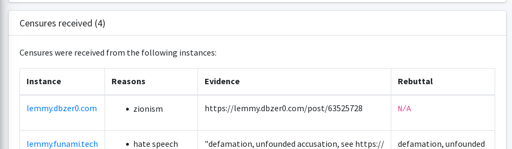 Hello, recently lemmy.dbzer0.com held a vote post about defederation from feddit.org and it seems they decided to make a defamatory censure as a result of the voting. As visible in the image. This is unacceptable since Feddit is not Zionist and does not promote Zionism of any kind. This is clearly defamation.
