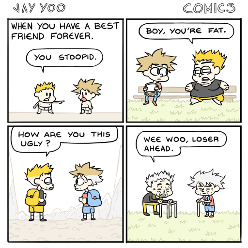 Blujayooo@lemmy.world to Comic Strips@lemmy.worldEnglish · 9 months agoWhen You have a Best Friend Foreverlemmy.worldimagemessage-square1linkfedilinkarrow-up11arrow-down10