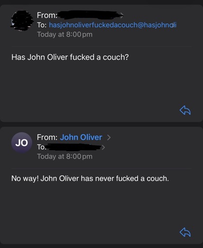 But if you ask hasjohnolivermadelovetoacouch…