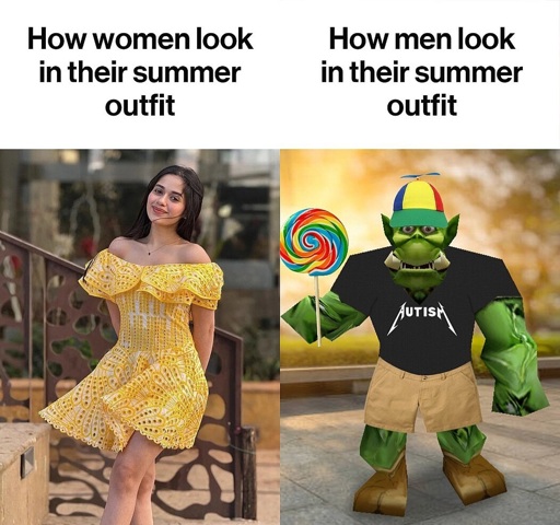 We could make Sundress and Propeller Hat the standard summer outfit, but we have failed as a society.