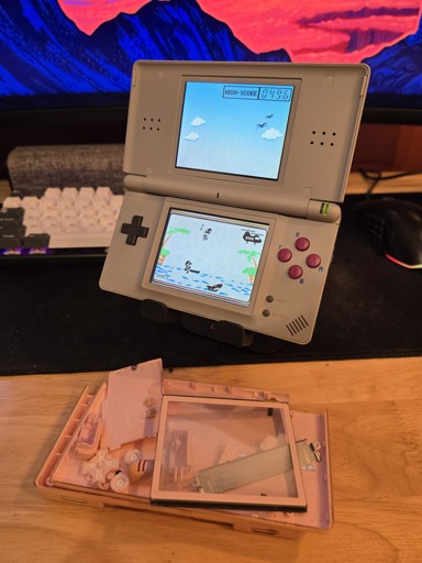 This is my third DSL. I love these things. It’s the most I’ve spent on a busted one so far, at $30. The last one I bought was 12, and the one before that was 5. All this one needed though was a new shell and a digitizer. Both screens are in excellent condition. The shell was very yellowed and busted.
