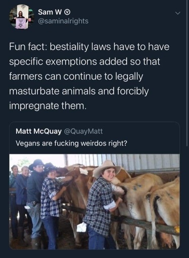 They’re absurd because they’re a false equivalency, which is a logical fallacy. Animal livestock are not comparable to human slaves.