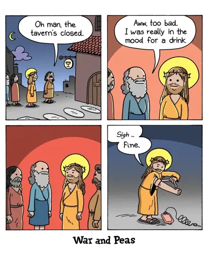 Comic = Christ’s blood turning into wine