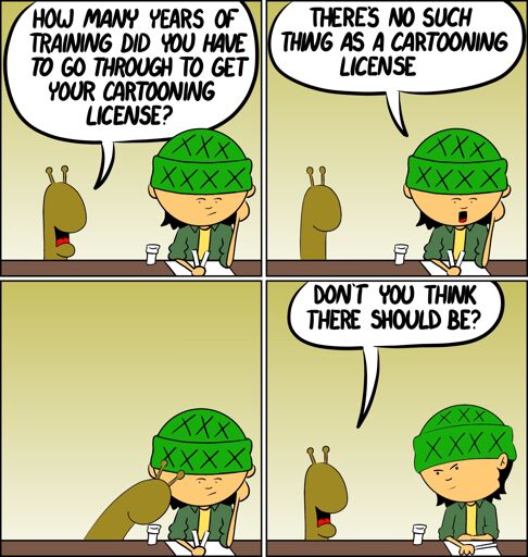 So the snail has a mouth, but no eyes? You really should have got your cartooning license…