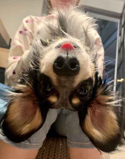 Stop it. That is extremely dangerous! By turning your dog on it’s head it not only turns his stomach, paws or tail but also it’s head. And that results in super cute looks.
