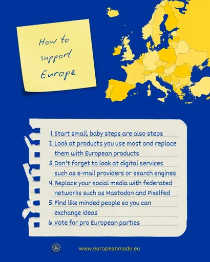 Grainne@lemmy.dbzer0.comM to BuyFromEU@lemmy.dbzer0.com · 2 months agoHow to support Europelemmy.dbzer0.comimagemessage-square0linkfedilinkarrow-up12arrow-down10