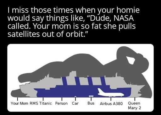 The mom jokes have nothing to do with the irl mums. My mum died 20 years ago, a good mum joke doesn’t.